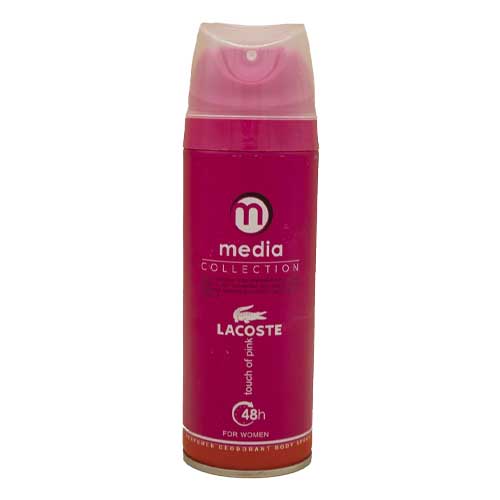 اسپری خوشبو کننده بدن زنانه مدیا با رایحه عطرهای معروف لالیک لامور با رایحه ملایم، لاویست بله و لاگوست با رایحه خنک و معتدل، چنسی چنل با رایحه خنک و باکارات رژ با رایحه چوبی، شیرین و ملایم و حجم 200 میلیلیتر عرضه گردیده. این خوشبو کننده بدن به دلیل تنوع در رایحه، قابل استفاده روزانه در تمام فصول سال میباشد.