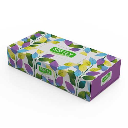 دستمال کاغذی جعبه ای 100 برگ دولایه سافتکس تهیه شده از کاغذ تیشو و فاقد پرز، الیاف خردشده، سوراخ و اجسام خارجی است. با استفاده از دستگاههای تمام اتوماتیک بهداشتی تولید شده و ضد حساسیت برای استفاده میباشد.