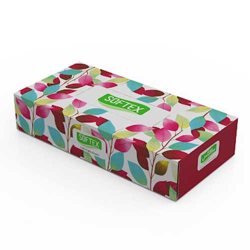 دستمال کاغذی جعبه ای 100 برگ دولایه سافتکس تهیه شده از کاغذ تیشو و فاقد پرز، الیاف خردشده، سوراخ و اجسام خارجی است. با استفاده از دستگاههای تمام اتوماتیک بهداشتی تولید شده و ضد حساسیت برای استفاده میباشد.