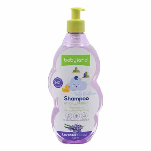 شامپو بچه پمپی بیبی لند با حجم 500 میلیلیتر در سه رایحه ملایم و مطبوع، شویندهای ملایم، نرمکننده، ضد گره و درخشان کننده موی کودک میباشد. این محصول دارای فرمولاسیون ضد سوزش چشم و ضد حساسیت ملایم است.
