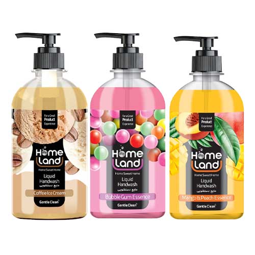 مایع دستشویی پاستیلی هوم لند با رایحههای مطبوع بلوبری، آدامس بادکنکی، هلو انبه و بستنی نسکافهای با حجم 500 میلیلیتر عرضه شده است. در تولید این محصول از گلیسرین استفاده شده است، به همین دلیل دارای خاصیت مرطوب کنندگی میباشد و بسیار سازگار با پوست دست میباشد.