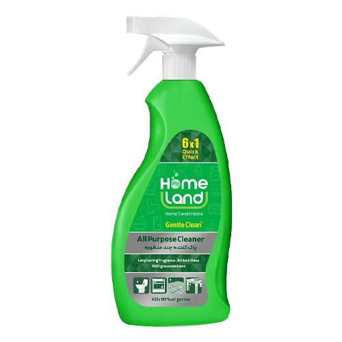 پاک کننده چند منظوره هوم لند با دو رایحه نعنا فلفی رنگ سبز و اسطوخودس رنگ بنفش با حجم 750 میلیلیتری عرضه شده است. این اسپری مناسب برای تمیز کردن سطوح مختلف، بدون باقی گذاشتن هیچ گونه رد و لکهای میباشد.