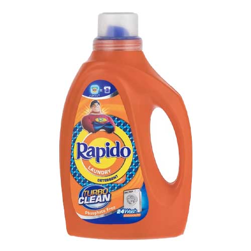 مایع لباسشویی راپیدو در دو حجم 1 و 1.5 لیتر توربو حاوی آنزیم های لکه بر عرضه گردیده. این مایع لباسشویی کنستانتره با فرمول غنی شده و آنزیمهای چند مرحلهای باعث لکه زدایی، چربی زدایی، سفید کنندگی و ضدعفونی کنندگی البسه میشود.