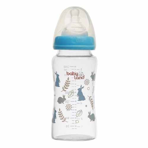 شیشه شیر ارتودنسی بیبی لند 240 میلی لیتر لوازم نوزاد و کودک پستانک و لوازم شیردهی شیشه شیر پیرکس ضد نفخ برند بیبی لند