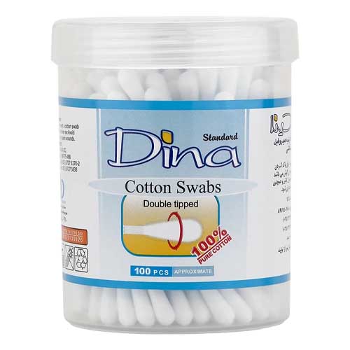 گوش پاک کن دینا از 100 % پنبه هیدروفیل اروپایی تهیه و در دو بستهبندی مکعبی 200 عددی و لیوانی 100 عددی عرضه شده است. این گوش پاککن کاملا بهداشتی و با قابلیت جذب بالا توسط دستگاههای تمام اتوماتیک و بدون دخالت دست تولید و بسته بندی میشود.