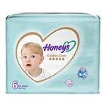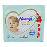 پوشک بچه چسبی هانیز سایز 6 خیلی خیلی بزرگ مناسب وزن 15 تا 25 کیلوگرم در دو بسته 24 و 28 عددی عرضه شده است. این پوشک کودک با استفاده از تکنولوژی Dry Lock مایعات را به سرعت و به طور کامل جذب و از نشتی جلوگیری میکند.