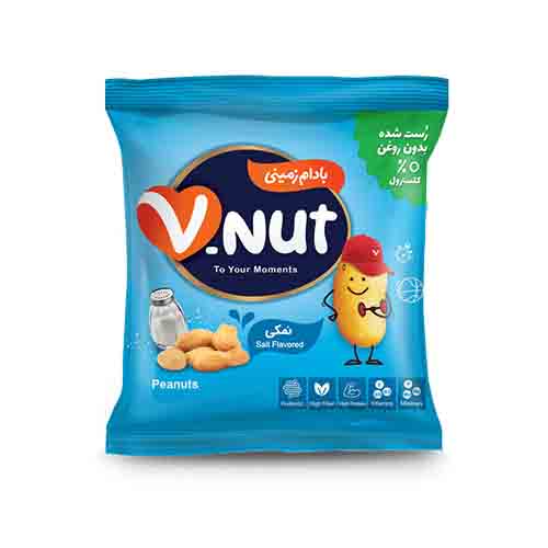 بادام زمینی وی نات با وزن 35 گرم در دو طعم نمکی و لیمویی، حاوی چربی های سالم بوده و یک گزینه عالی برای اسنک میان وعده یا پر کردن کمبود انرژی در طول روز میباشد. در تولید این محصول از روغن استفاده نشده و برای ترد و برشته شدن، بادام زمینی ها رست میشوند.