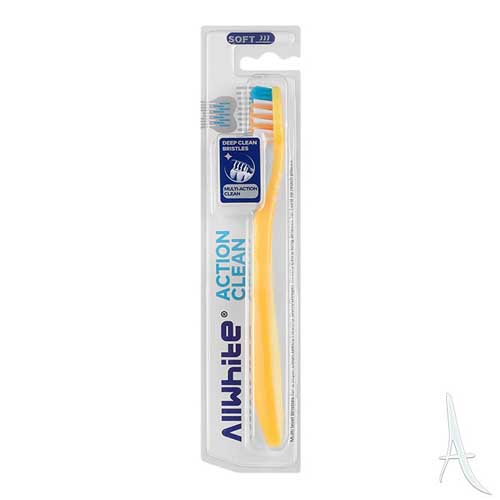 مسواک اکشن کلین ال وایت با برس نرم به گونه ای طراحی شده که دارای الیاف بلندتر در اطراف و سر برس بوده که تمیزی دندانهای در نواحی دور را آسان میکند. همچنین انتهای گرد شده الیاف از آسیب به مینای دندان و لثه جلوگیری میکند.