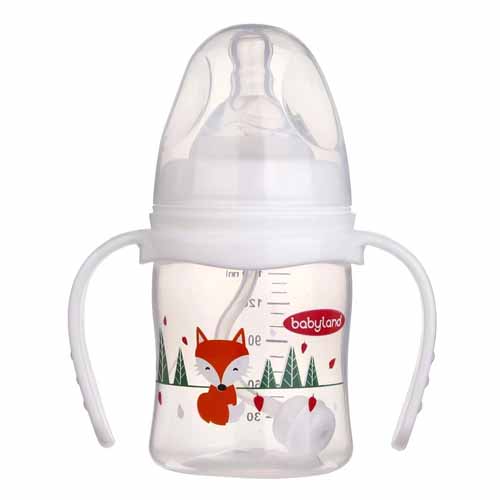 شیشه شیر پلی پروپیلن بیبی لند با گنجایش 150 میلی لیتر دارای دهانه عریض، با جنس بدنه پلیپروپیلن و جنس سری سیلیکونی فاقد مواد مضر میباشد. این محصول دارای طراحی آرگونامیک و دسته بر روی بدنه میباشد.