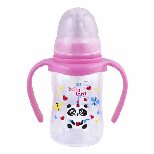 شسشه شیر کلاسیک بیبی لند با گنجایش 150 میلی لیتر با جنس بدنه پلیپروپیلن و جنس سری سیلیکونی فاقد مواد مضر عرضه گردیده.این محصول دارای طراحی آرگونامیک و در دو طرح با دسته و فاقد دسته میباشد.
