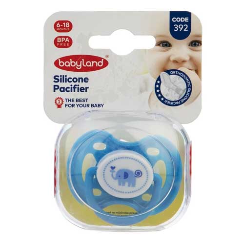 پستانک ارتودنسی بیبی لند کد 392 دارای سری سیلیکونی نرم و ارتودنسی است که سازگار با رشد دندان و فک نوزاد است. دارای حفرههای هواساز بر روی بدنه پستانک بوده که از تعریق نوزاد جلوگیری میکند..