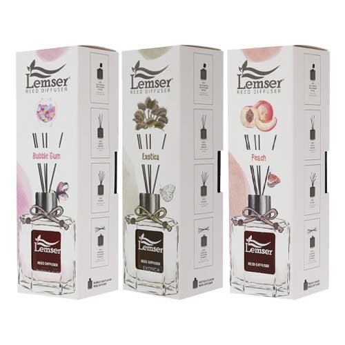 خوشبو کننده هوا مدل رید دیفیوزر لمسر 120 میلی‌لیتری با رایحه‌های متنوع و ماندگاری 3 ماه قابل استفاده بصورت رومیزی می‌باشد. این محصول بدون ایجاد حساسیت مناسب استفاده در فضای اتاق، سرویس بهداشتی، باشگاه، محل کار و... می‌باشد.