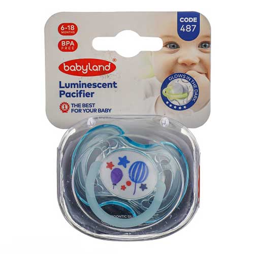 پستانک ارتودنسی بیبی لند کد 487 دارای سری ارتودنسی و محافظ لثه و دندان نوزاد است. شب تاب بوده و در تاریکی به بیشترین درخشنگی خود میرسد. قابلیت استریل و شستشوی آسان را نیز دارد.