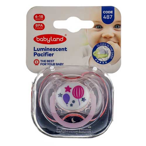 پستانک ارتودنسی بیبی لند کد 487 دارای سری ارتودنسی و محافظ لثه و دندان نوزاد است. شب تاب بوده و در تاریکی به بیشترین درخشنگی خود میرسد. قابلیت استریل و شستشوی آسان را نیز دارد.