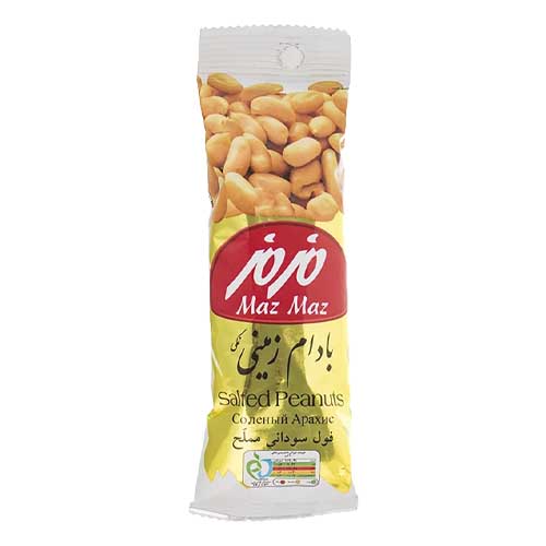 بادام زمینی مزمز با دو طعم خوشمزه نمکی و سرکهای حاوی مواد مغذی همچون منگنز، نیاسین، فیبر، فسفر و اسید فولیک میباشد، و در بستهبندی 35 گرمی عرضه گردیده. این محصول به سلامت و استحکام استخوان ها کمک کرده و دارای خواص ضد التهابی میباشد.