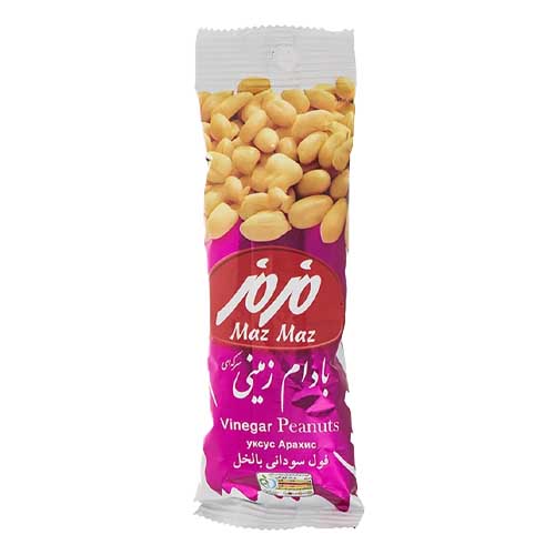 بادام زمینی مزمز با دو طعم خوشمزه نمکی و سرکهای حاوی مواد مغذی همچون منگنز، نیاسین، فیبر، فسفر و اسید فولیک میباشد، و در بستهبندی 35 گرمی عرضه گردیده. این محصول به سلامت و استحکام استخوان ها کمک کرده و دارای خواص ضد التهابی میباشد.