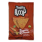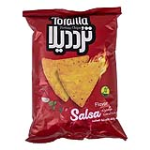 چیپس ذرت ترددیلا با طعمهای خوشمزه و متنوع سالسا، باربیکیو، پنیری، مکزیکی، کنجدی و ماست و موسیر در بسته 100 گرمی عرضه شده است. برگه ذرت ترتیلا میانوعدهای سالم، تهیه شده از دانه ذرت، آب، روغن، نمک و ادویههای مختلف میباشد.
