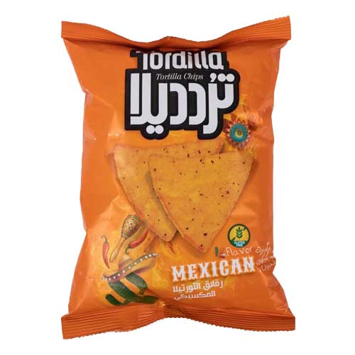 چیپس ذرت ترددیلا با طعمهای خوشمزه و متنوع سالسا، باربیکیو، پنیری، مکزیکی، کنجدی و ماست و موسیر در بسته 100 گرمی عرضه شده است. برگه ذرت ترتیلا میانوعدهای سالم، تهیه شده از دانه ذرت، آب، روغن، نمک و ادویههای مختلف میباشد.