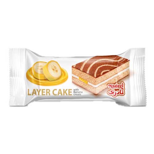 کیک دو لایه نادری با طعم پرتقالی، موزی و آناناس در بسته 30 گرمی عرضه شده است. این کیک از ترکیب کیک اسفنجی و لایه داخلی کرم با طعم میوه بسیار نرم، لطیف و خوشمزه بوده و مناسب به عنوان یک میان وعده، عصرانه و.. میباشد.
