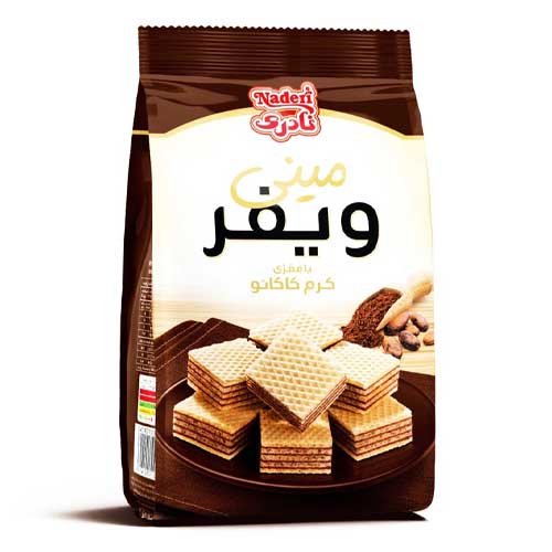 مینی ویفر نادری در بستهبندی پاکتی 90 گرمی با مغزی کرم در طعمهای پرتقالی، موزی، نارگیلی وکاکائویی عرضه شده است. این ویفر یک میان وعده بسیار خوش طعم و خوشمزه برای همه سنین و مناسب برای سرو در عصرانه در کنار چای و قهوه میباشد.