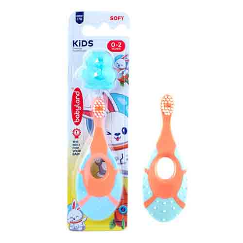 مسواک یادگیری کودک بیبی لند کد 378 محصولی برای بهداشت دهان و دندان کودکان میباشد. انتهای الیاف به شکل گرد طراحی شده تا از آسیب به مینای دندان و لثه جلوگیری کند. الیاف رنگی در وسط میزان مناسب خمیردندان را مشخص میکند.