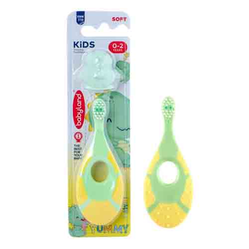 مسواک یادگیری کودک بیبی لند کد 378 محصولی برای بهداشت دهان و دندان کودکان میباشد. انتهای الیاف به شکل گرد طراحی شده تا از آسیب به مینای دندان و لثه جلوگیری کند. الیاف رنگی در وسط میزان مناسب خمیردندان را مشخص میکند.