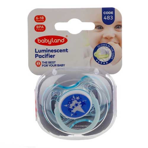 پستانک ارتودنسی بیبی لند کد 483 دارای سری ارتودنسی و محافظ لثه و دندان نوزاد است. شب تاب بوده و در تاریکی به بیشترین درخشنگی خود میرسد. قابلیت استریل و شستشوی آسان را نیز دارد.