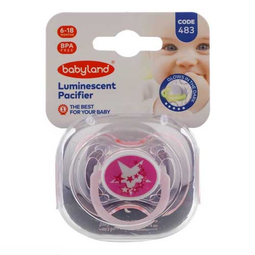 پستانک ارتودنسی بیبی لند کد 483 دارای سری ارتودنسی و محافظ لثه و دندان نوزاد است. شب تاب بوده و در تاریکی به بیشترین درخشنگی خود میرسد. قابلیت استریل و شستشوی آسان را نیز دارد.