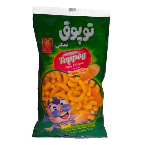 پفک نمکی توپوق فرآورده حجیم شده پنیری بر پایه ذرت، حاوی رنگ طبیعی پابریکا میباشد، که در بسته 80 گرمی و خانواده 140 گرمی عرضه شده است. این اسنک پنیری با بافت ترد و طعم پنیری خود، از ترکیب غلات کامل و سایر مواد اولیه با کیفیت بالا تهیه شده است.