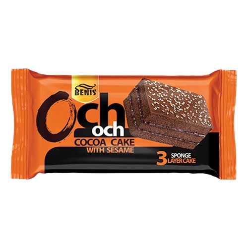 کیک سه لایه اوچ بنیس در دو طعم شکلاتی و وانیل کاکائو باطعم عسل و تزئین کنجد یکی از کیکهای سه لایه بسیار خوشطعم و خوشمزه برند بنیس میباشد. میتوان از این کیک به عنوان میان وعدهای لذیذ، شیک و مناسب در مراسم، رویدادها و مناسبتهای گوناگون استفاده کرد.