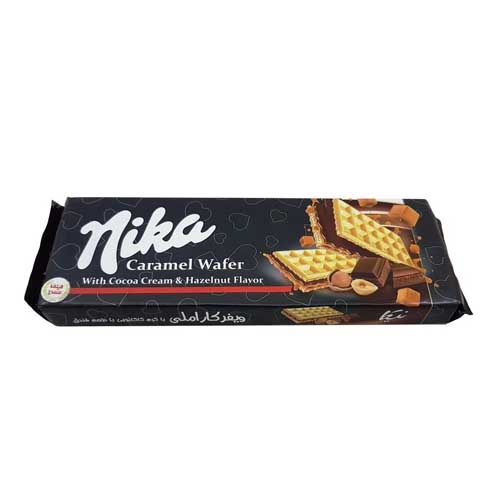 ویفر کاراملی نیکا با وزن 133 گرم و طعمهای کرم کاکائو، پرتقال، وانیل و موز عرضه گردیده است. این ویفر منبع کربوهیدرات و انرژی است و میتواند انرژی بدن را تامین کند. همچنین حاوی مقدار کمی پروتئین و مواد معدنی مانند آهن و منیزیوم نی میباشد.