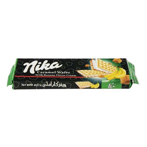 ویفر کاراملی نیکا با وزن 133 گرم و طعمهای کرم کاکائو، پرتقال، وانیل و موز عرضه گردیده است. این ویفر منبع کربوهیدرات و انرژی است و میتواند انرژی بدن را تامین کند. همچنین حاوی مقدار کمی پروتئین و مواد معدنی مانند آهن و منیزیوم نی میباشد.