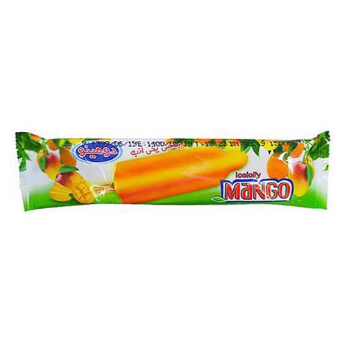 بستنی یخی چوبی دومینو با وزن 60 گرم و طعمهای پرتقالی، انبه و شاتوت تهیه شده است. این بستنی با طعم دلچسب میوه ای به رفع عطش و تشنگی در روزهای گرم کمک میکند.