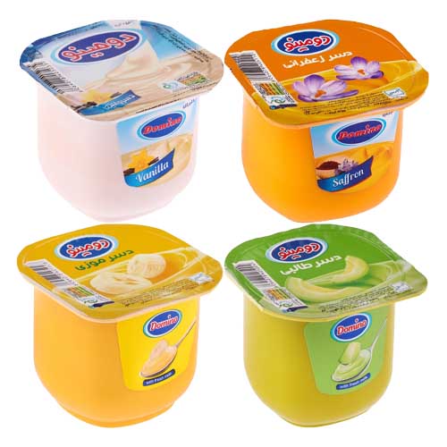 دنت دومینو طعم وانیل موزی طالبی زعفرانی 100 گرم دسر آماده دنت دومینو قیمت و خرید محصولات دومینو