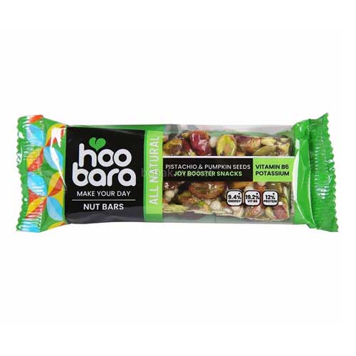 نات بار هوبارا با وزن 35 گرم و مدلهای پسته و تخمه کدو، فندق و بادام زمینی و میکس آحیل و بری عرضه گردیده است. این محصول سرشار از مواد مغذی و مفید بوده و به سلامت و تندرستی بدن کمک میکند و به دلیل داشتن پروتئین و انرژی بالا مناسب برای مصرف ورزشکاران میباشد.