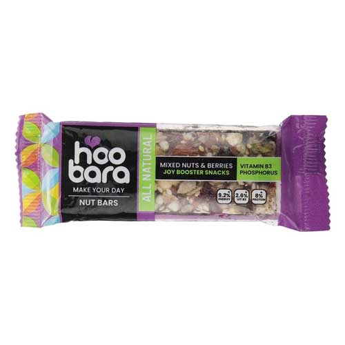 نات بار هوبارا با وزن 35 گرم و مدلهای پسته و تخمه کدو، فندق و بادام زمینی و میکس آحیل و بری عرضه گردیده است. این محصول سرشار از مواد مغذی و مفید بوده و به سلامت و تندرستی بدن کمک میکند و به دلیل داشتن پروتئین و انرژی بالا مناسب برای مصرف ورزشکاران میباشد.