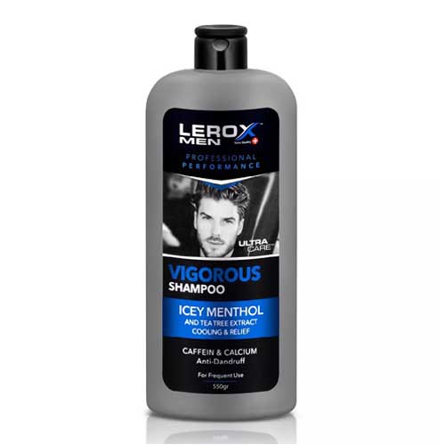 شامپو موی سر آقایان لروکس حاوی عصاره گیاه چای سبز و کافیین بوده که حس خنکی در گرمای تابستان را به موها میبخشد. این محصول از شوره موی سر جلوگیری و با کنترل چربی پوست به رشد و انعطافپذیری موها کمک میکند.