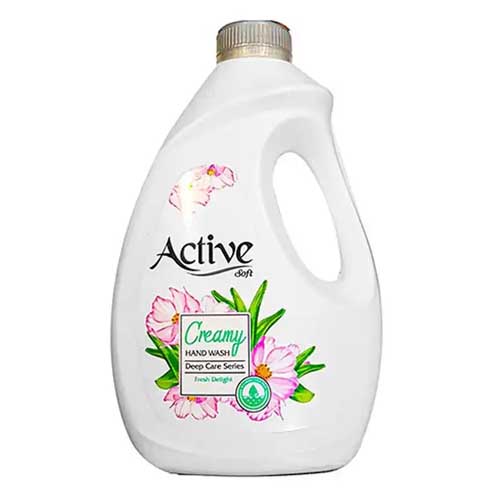 مایع دستشویی کرمی اکتیو حاوی نرم کننده و مرطوب کننده طبیعی است و با PH سازگار با پوست دست، مناسب برای پوستهای خشک و حساس است و باعث نرمی، شادابی و لطافت پوست میشود.