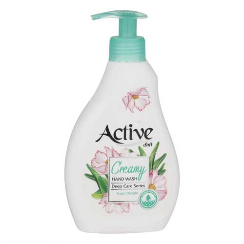 مایع دستشویی کرمی اکتیو حاوی نرم کننده و مرطوب کننده طبیعی است و با PH سازگار با پوست دست، مناسب برای پوستهای خشک و حساس است و باعث نرمی، شادابی و لطافت پوست میشود.