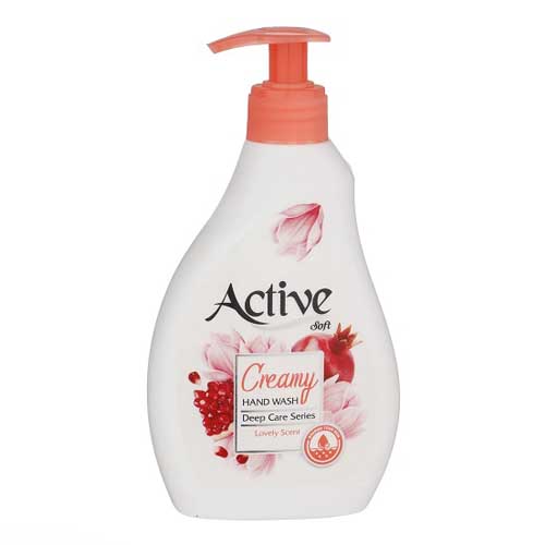 مایع دستشویی کرمی اکتیو حاوی نرم کننده و مرطوب کننده طبیعی است و با PH سازگار با پوست دست، مناسب برای پوستهای خشک و حساس است و باعث نرمی، شادابی و لطافت پوست میشود.