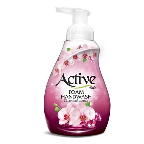 مایع دستشویی فوم اکتیو با فرمولاسیون ویژه با دو رایحه گل شب بو و ارکیده در چند رنگ باحجم 500 میلیلیتر عرضه گردیده. این فوم شستشوی دست دارای قدرت پاک کنندگی مطلوب است و با حفظ رطوبت پوست باعث نرمی و لطافت پوست دست میشود.