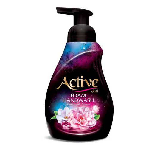 مایع دستشویی فوم اکتیو با فرمولاسیون ویژه با دو رایحه گل شب بو و ارکیده در چند رنگ باحجم 500 میلیلیتر عرضه گردیده. این فوم شستشوی دست دارای قدرت پاک کنندگی مطلوب است و با حفظ رطوبت پوست باعث نرمی و لطافت پوست دست میشود.