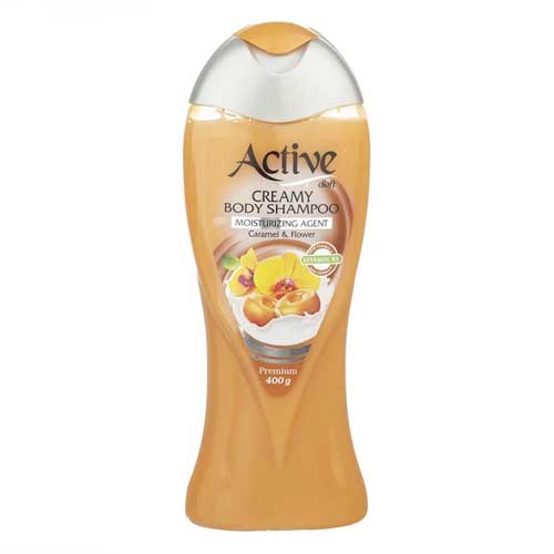 شامپو بدن کرمی اکتیو با رایحههای متنوع و مطبوع با حجم 400 میلیلیتر عرضه گردیده. این شونیده بدن حاوی ویتامین B5 و نرم کننده های مناسب است که نرمی و رطوبت بالایی را ایجاد می کند و آبکشی آن نیز بعد از شستشو و استحمام آسان است.