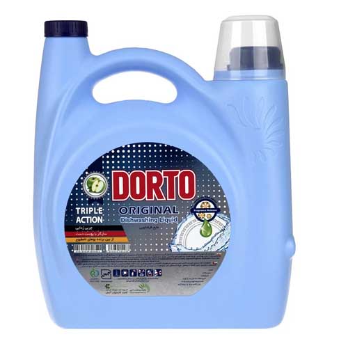 مایع ظرفشویی دورتو حجم 3.75 لیتر دارای عملکرد سه گانه و ترکیبی از مواد ضدعفونی کننده و پاککننده قوی است. دارای غلظت، کفکنندگی مناسب و آبکشی آسان بوده و از بین برنده قوی چربی و جرم و باکتریها از روی ظروف میباشد.