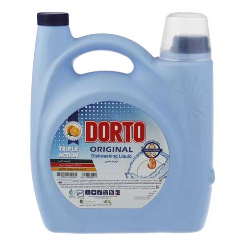 مایع ظرفشویی دورتو حجم 3.75 لیتر دارای عملکرد سه گانه و ترکیبی از مواد ضدعفونی کننده و پاککننده قوی است. دارای غلظت، کفکنندگی مناسب و آبکشی آسان بوده و از بین برنده قوی چربی و جرم و باکتریها از روی ظروف میباشد.