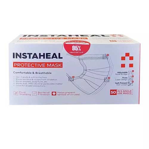 ماسک تنفسی سه لایه اینستاهیل، از نفوذ گرد و غبار و ذرات آلاینده PM 2.5 جلوگیری میکند. این محصول دارای فیکسر بینی قابل تنظیم و کش پرس شده است و مانع از انتقال هر نوع ویروس و باکتری از طریق قطرات تنفسی میشود.