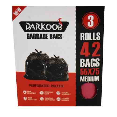 کیسه زباله پرفراژ دار دارکوب سایز مدیوم با بسته بندی مناسب حاوی سه رول میباشد که دارای 42 عدد کیسه می باشد. این محصول در برابر پارگی مقاوم بوده و از هرگونه نشتی جلوگیری میکند.