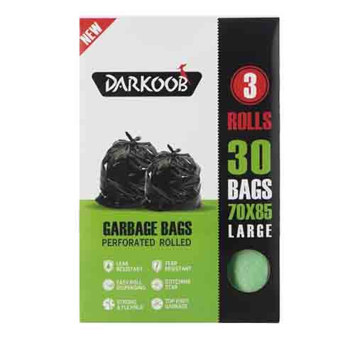 کیسه زباله پرفراژ دار دارکوب سایز لارج با بسته بندی مناسب حاوی سه رول بوده که دارای 30 عدد کیسه می باشد. این محصول در برابر پارگی مقاوم بوده و از هرگونه نشتی جلوگیری میکند.