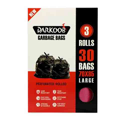 کیسه زباله پرفراژ دار دارکوب سایز لارج با بسته بندی مناسب حاوی سه رول بوده که دارای 30 عدد کیسه می باشد. این محصول در برابر پارگی مقاوم بوده و از هرگونه نشتی جلوگیری میکند.