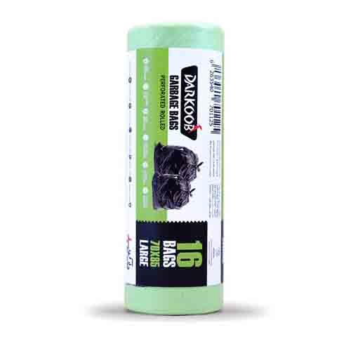 کیسه زباله رولی و پرفراژ دار دارکوب سایز لارج دارای 16 عدد کیسه و اندازه 70 در 85 سانتی متر می باشد. این محصول در برابر پارگی مقاوم بوده و از هرگونه نشتی جلوگیری میکند.